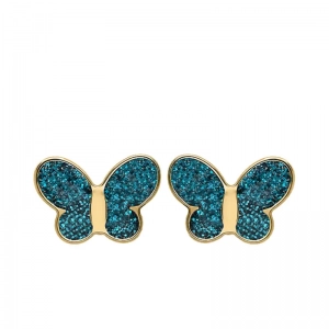 • Boucles d’Oreilles Papillons Bleues en Or Jaune 375/1000