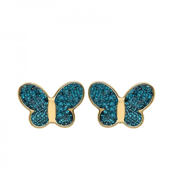 Boucles d’Oreilles Papillons Bleues en Or Jaune 375/1000