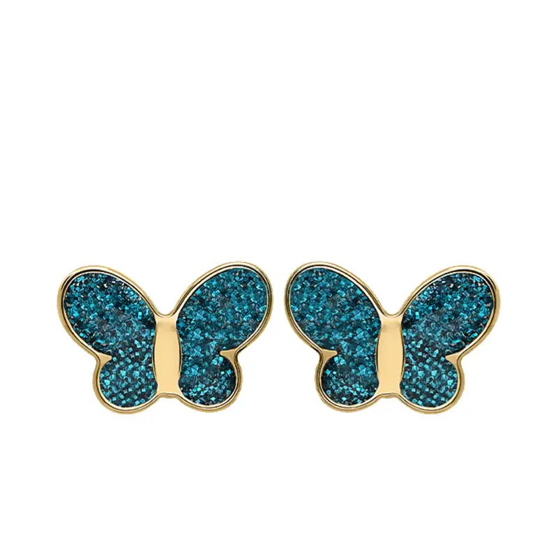 Boucles d’Oreilles Papillons Bleues en Or Jaune 375/1000