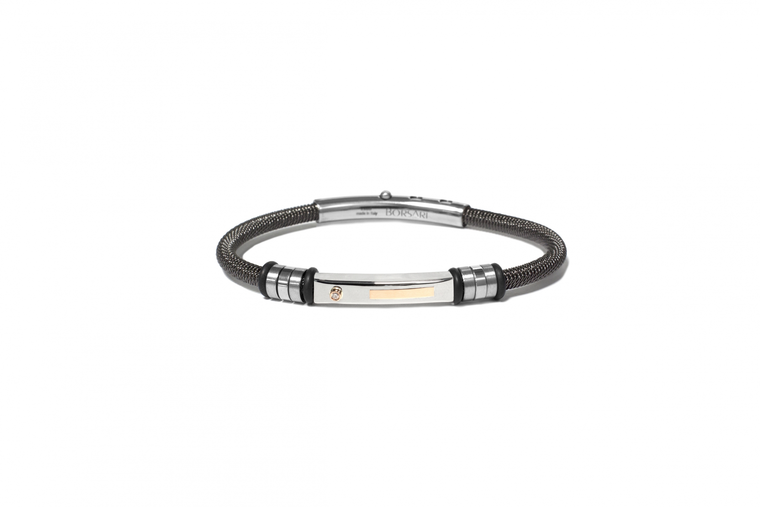 BRACELET ACIER PVD NOIR BARRE 18K DTS 0.0125CT
