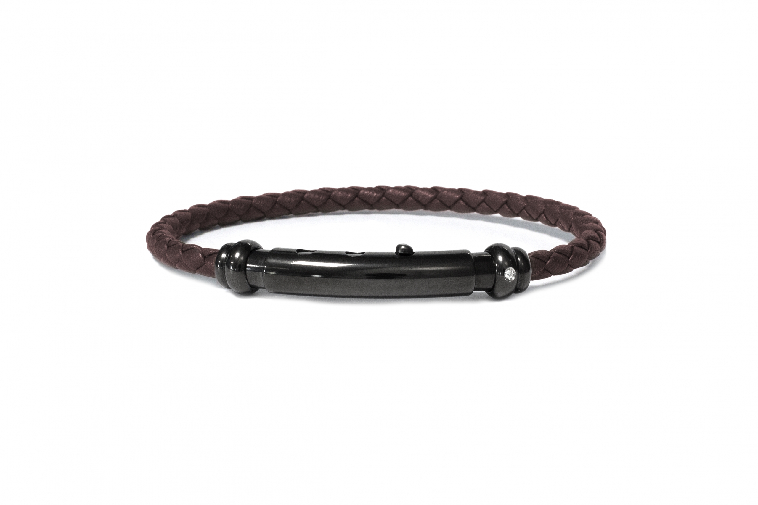 BRACELET CORDA ACIER PVD NOIR DTS 0.01 CUIR MARRON