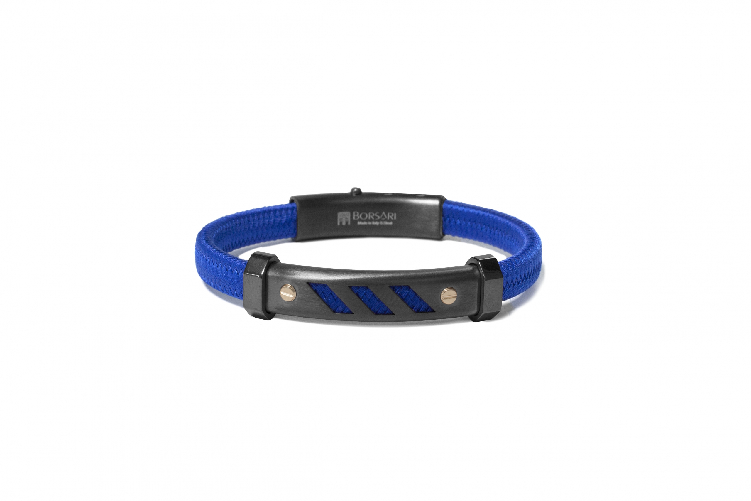 BRACELET ACIER PVD NOIR POLYESTER BLEU 2 VIS 18K 0.030GR