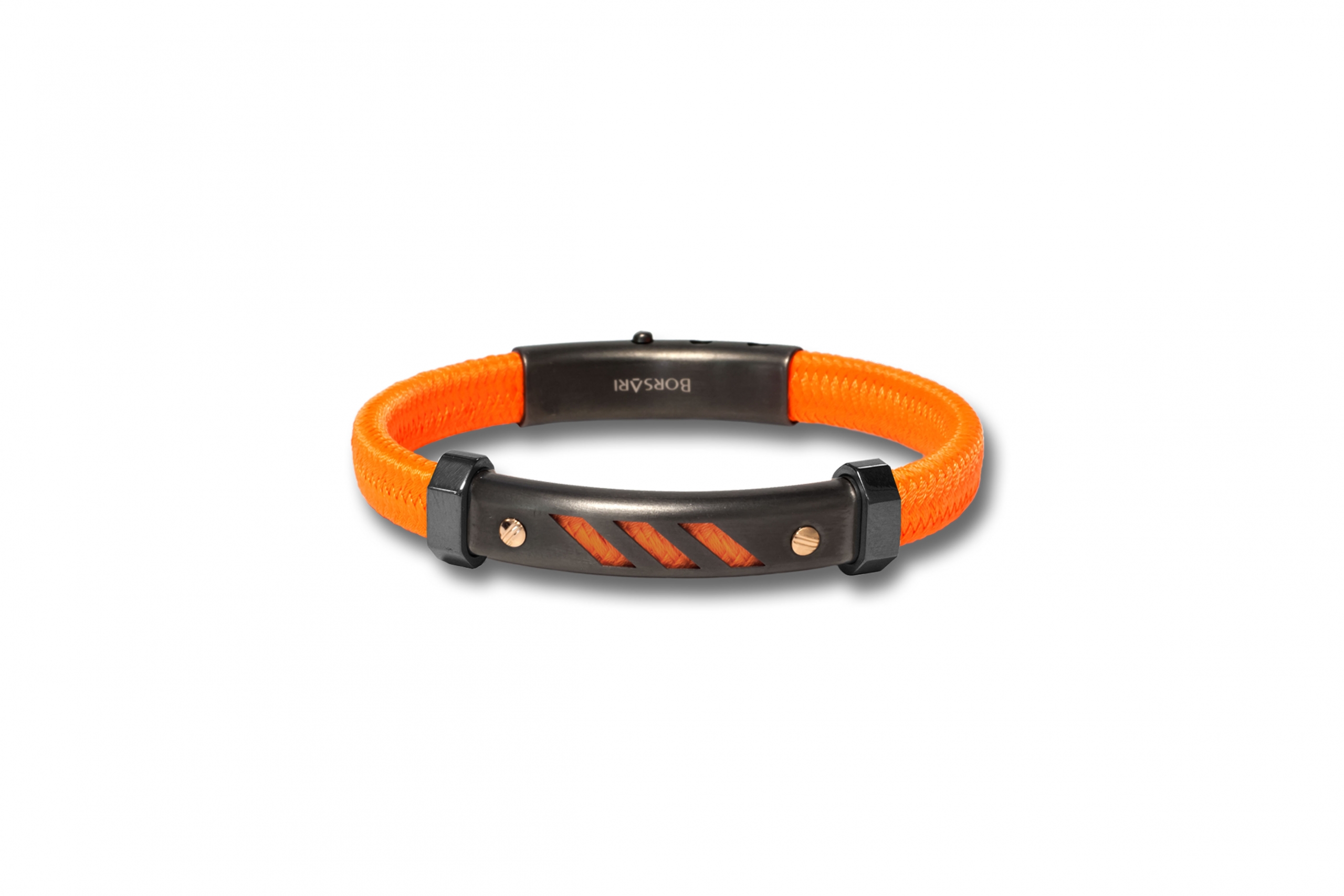 BRACELET ACIER PVD NOIR POLYESTER ORANGE 2 VIS 18K 0.030GR