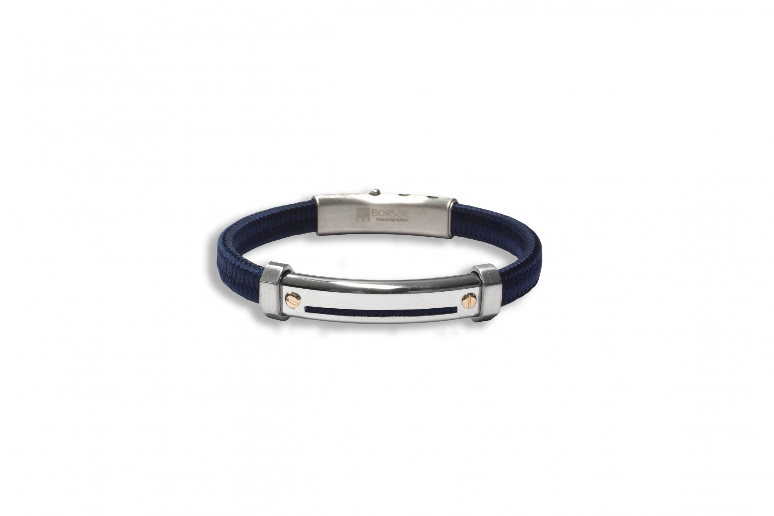 BRACELET ACIER POLYESTER BLEU NAVY 2 VIS 18K 0.030GR