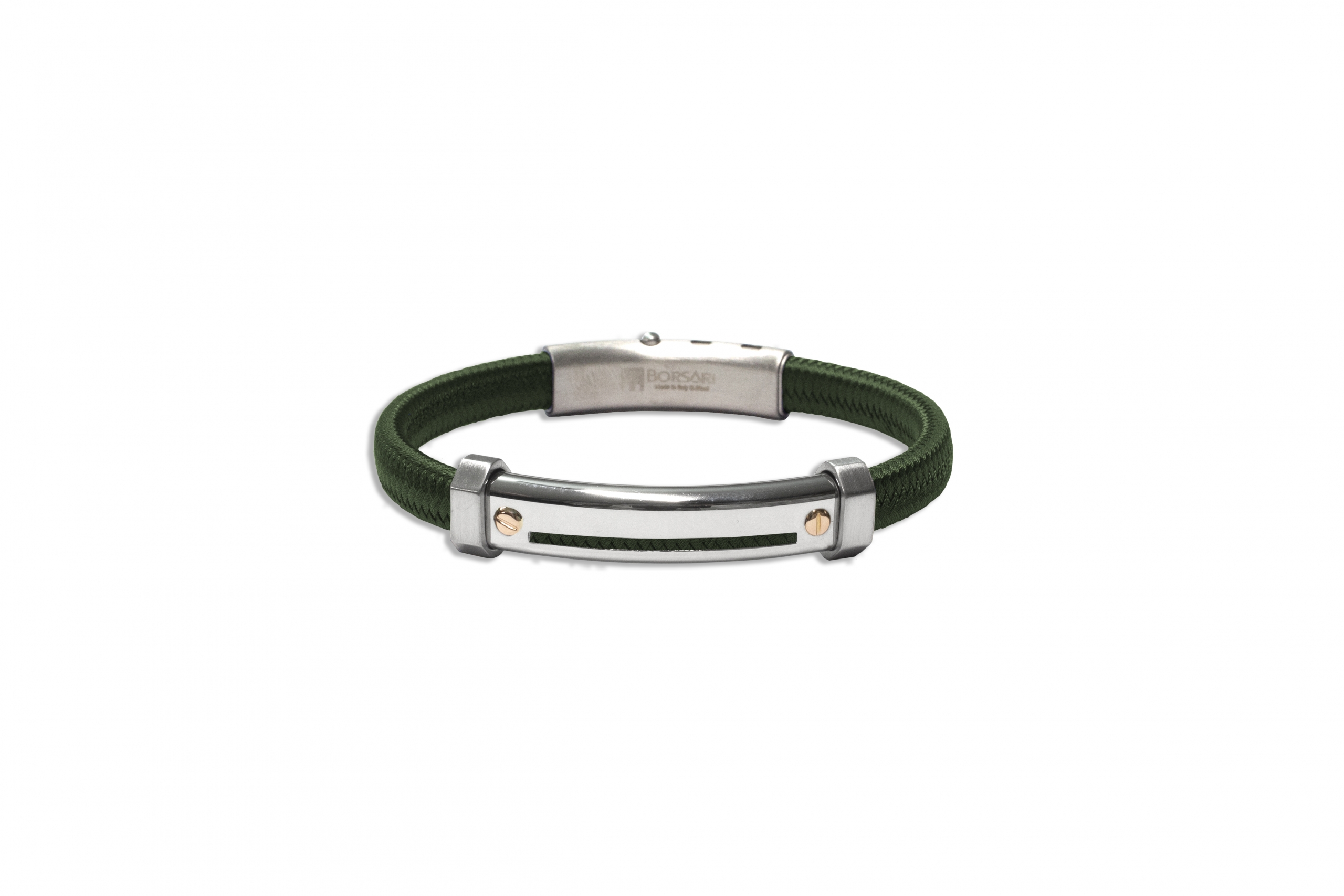 BRACELET ACIER POLYESTER VERT 2 VIS 18K 0.030GR