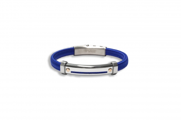 BRACELET ACIER POLYESTER BLEU 2 VIS 18K 0.030GR