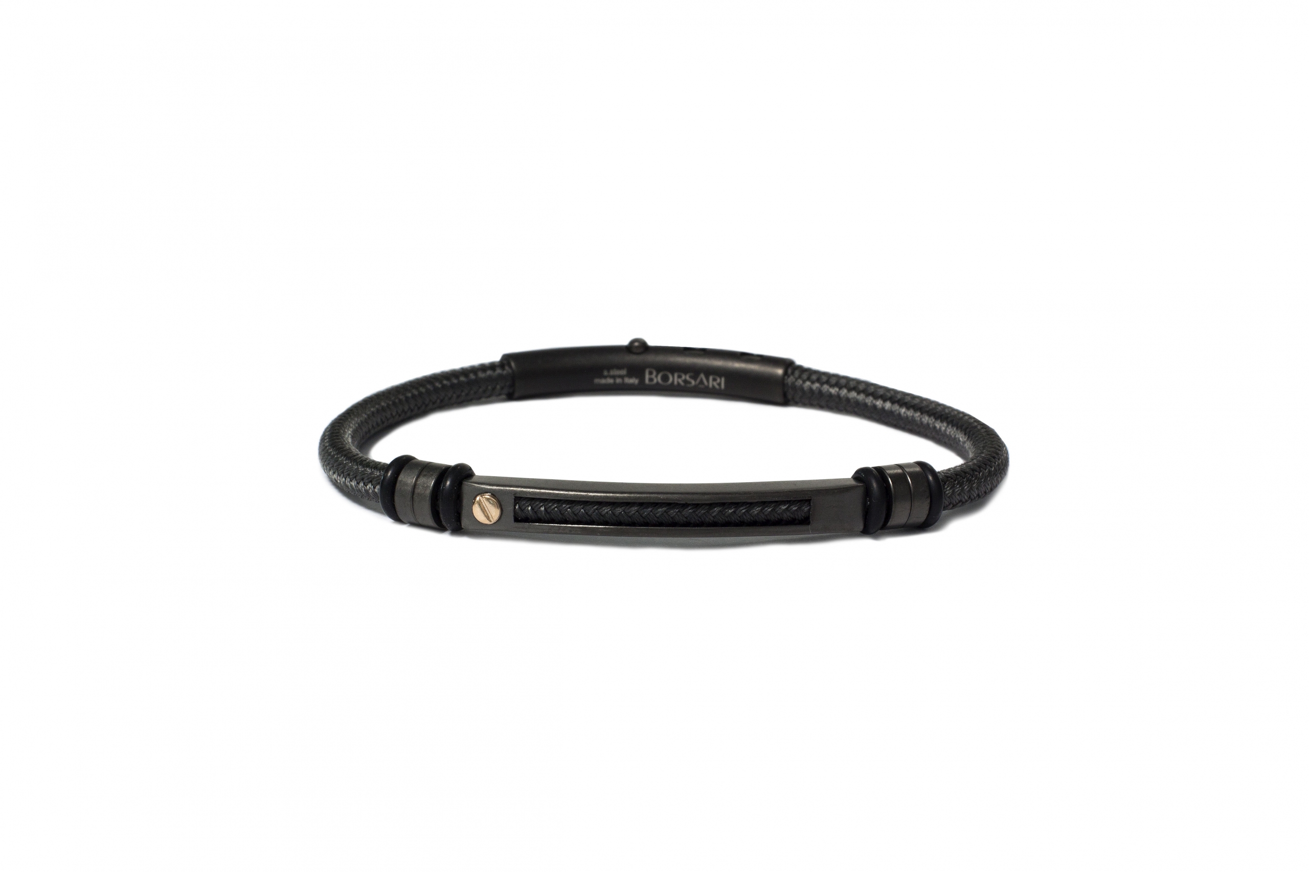 BRACELET ACIER PVD NOIR POLYESTER GRIS FONCE 1 VIS 18K 0.015 GR