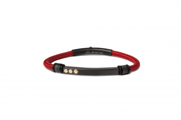 BRACELET ACIER PVD NOIR POLYESTER ROUGE 3 VIS 18K 0.045GR