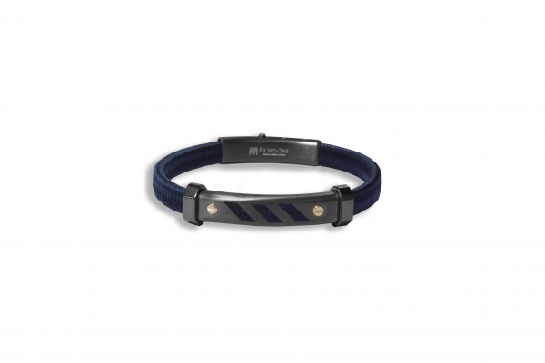 BRACELET ACIER PVD NOIR POLYESTER BLEU NAVY 2 VIS 18K 0.030GR