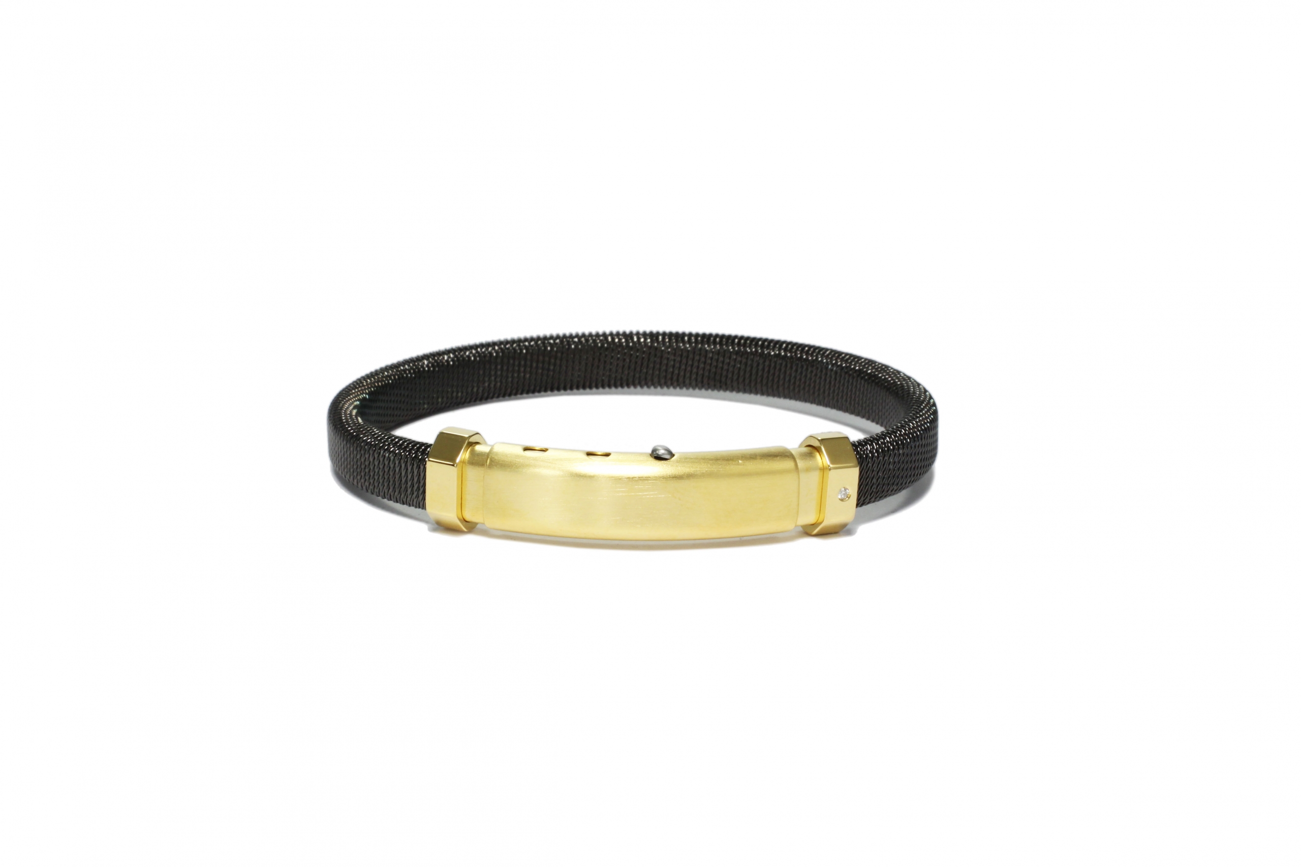 BRACELET ACIER PVD NOIR /FERMOIR PVD OR JAUNE DTS 0.01 CT